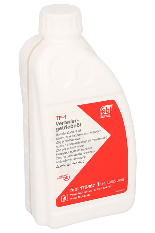 For gasoline models, the specified transfer case fluid is TF 0870, and any fluid meeting that spec should work. I personally used FEBI Bilstein 170367, which comes in a 1-liter bottle. Many owners choose Ravenol DTF-1, which comes in a bottle with a built-in filler spout, saving you the trouble of using a pump or syringe.