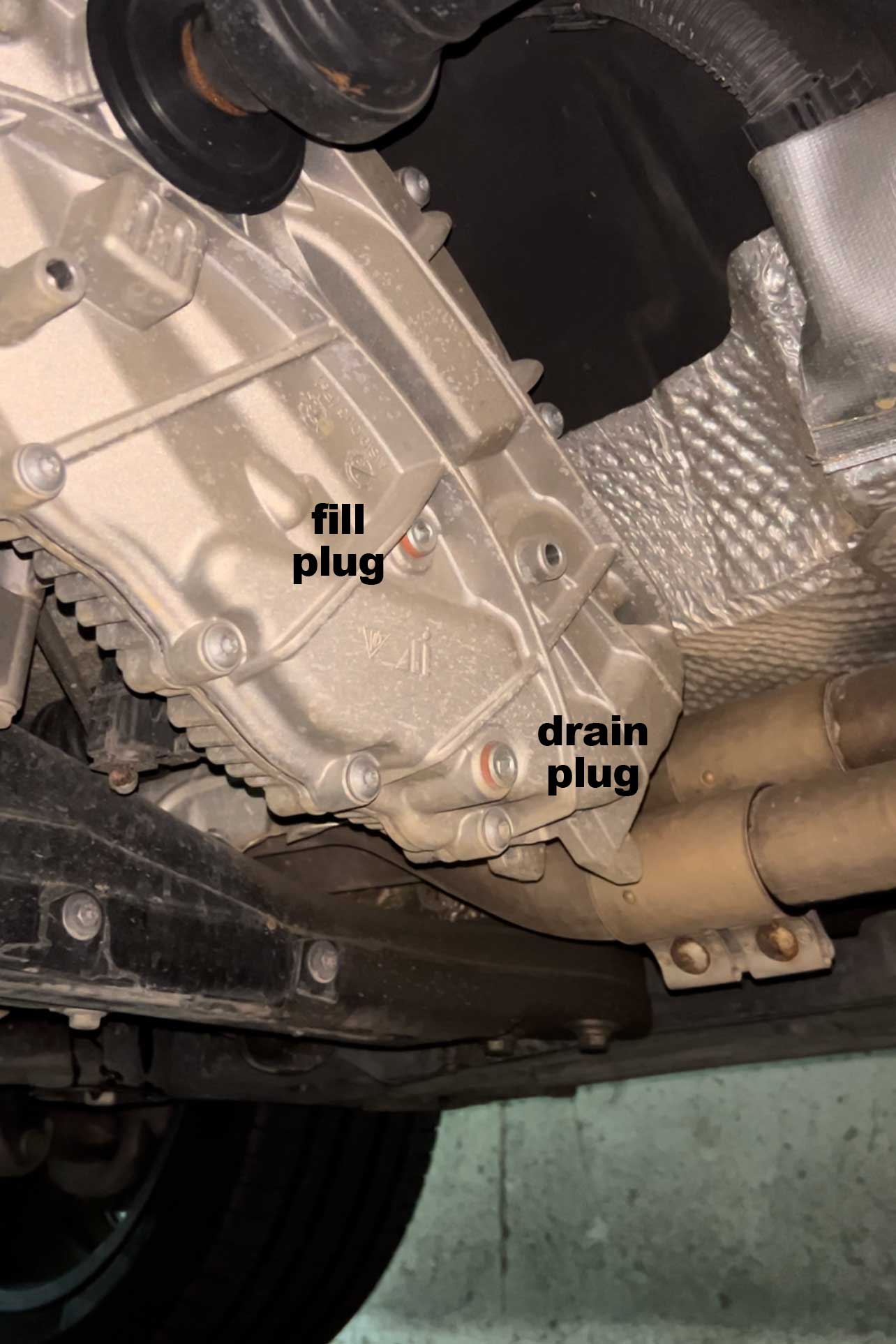 - Identify the fill plug and drain plug (at the bottom). Remove the fill plug first, to ensure you can refill before draining.