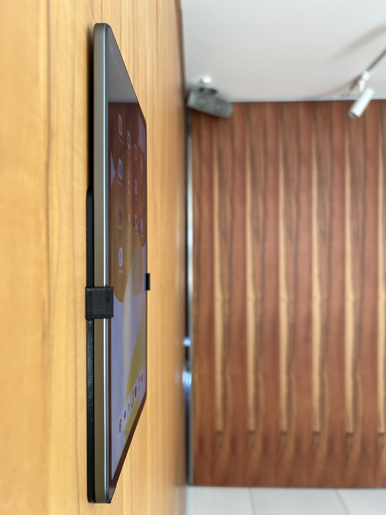 I designed a vertical wall mount specifically for the Redmi Pad SE. The idea was to keep the mount as minimal as possible. I wanted something that looked clean and modern, with a very slim profile that would almost disappear once installed. Instead of enclosing the tablet in a bulky frame, I designed a pair of small clips that hold it firmly in place while leaving the edges fully visible. The tablet sits just a few millimeters from the wall, creating a floating look. It’s also very easy to remove and put back whenever needed.